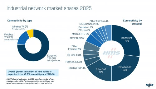 The 2025 analysis shows that Ethernet-based industrial networks now account for 76% of new nodes, up from 71% in 2024.